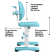 Также в комплекте есть растущий стул, который регулируется по высоте, и его спинка также регулируется по высоте и глубине. На ножках стола есть вспомогательная ростовая наклейка, она показывает соотношение роста ребенка с высотой стула и помогает подобрать нужную высоту. Прочный металлический каркас позволяет пользоваться партой длительное время. Комплект является эргономичным и помогает сохранять осанку ребенка здоровой.